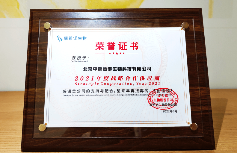 中源合聚生物有限公司获评康希诺生物股份公司2021年度战略合作供应商。22-08-10