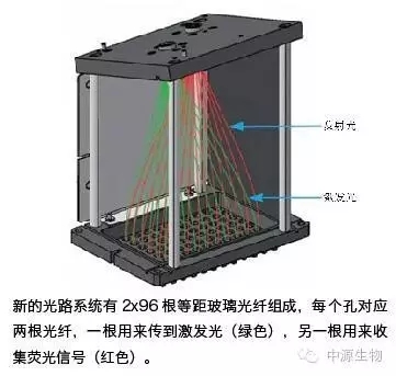 LightCycler480Ⅱ检测单元横截面图。采用了精心设计的五角棱镜光学结构,光学元件及焦距的巧妙组合确保了整板信号激发的特异性与数据收集的一致性,从而清除了边缘效应。